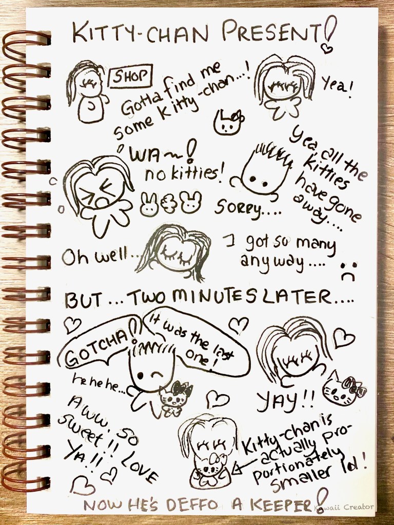 In the corner is a shelf full of stuffed animals for kids. Maybe there is an outside chance a Hello Kitty would be lying around somewhere! Alas not. “I think they’ve all gone away”, teases my partner as he lines up to pay for the gas. I was disappointed but not surprised as Hello Kitty’s are rarely sold in gas station shops in Europe. A few minutes later out of the blue he approaches me with one hand behind his back as if he were hiding something. Then suddenly appears a Hello Kitty plush in front of my very eyes! She’s wearing a blue dress with a matching ribbon. “It was the last one”, he winked. Awww that was so sweet of him! My partner is definitely a keeper. And so our new Hello Kitty followed us around during our vacation. Lots of photos of her as if she were a part of us. But she is! And she will definitely be joining us in our future trips too, our travelling Kitty…