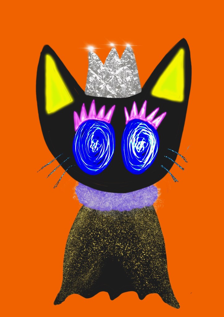 Halloween is coming up shortly! Every year, I make the effort to paint about this spooky holiday when I have the chance. Not just one painting but a few of them, possibly at least one each in digital painting and in analog mixed media. Procreate app gives one a great opportunity to play around with different effects. This year, I went for a black cat! Just for fun, how about a black cat all dressed up? As a princess perhaps?