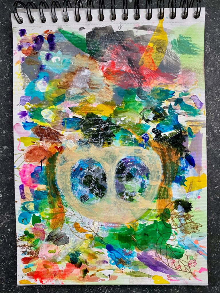 So what are all these random splotches of paint on this sketchbook page? Whenever I am painting, I like to mix or test my colors first before applying them on my painting. Sort of like a palette used over and over again till the whole page is filled up. This make a great basis for mixed media artwork, something I do regularly as I prefer not to waste paper and excess paint. As you can see, too, it is not only the plethora of colors that give this a good basis for a painting, but check out the texture too! That is made possible when blobs of paint harden. Sketchbook is Canson’s A4 pad of Mixed Media paper (300 gsm). Quite a lot of potential here!