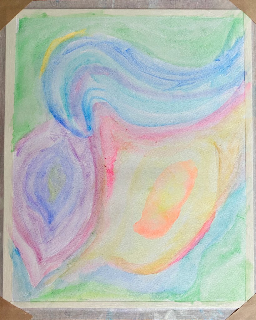 So away I went and logged onto Alena Hennessy “Watercolor Wonders” on-line classes. Another practice session for me in the Beginnings unit during which we familiarize ourselves with watercolor techniques, experiment with different brush sizes and play with color. Here I merely used a cheap set of watercolor pans from Amazon. Not the greatest quality, mind you, but they come in a variety of colors including a few pretty fluorescent shades which I wanted to check out. Also the paper used came with the set which also explains why it is very important to seek good quality supplies! Not to worry, I was merely testing out and practicing…