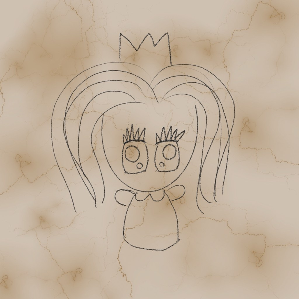 I thought it would be fun to try this with digital painting on Procreate. A square canvas was chosen on which I went for a beige background with the intention of drawing with pastels and chalk later. First, though, textures were introduced before sketching my character, Little One. Electricity 2 from the Lights brush set (available on Creative Market) seemed a great choice to give the surface a crumpled paper look, enhanced further with Color Burn light mode. And then I was ready to sketch Little One with Procreate Pencil! Isn’t she looking so sweet?