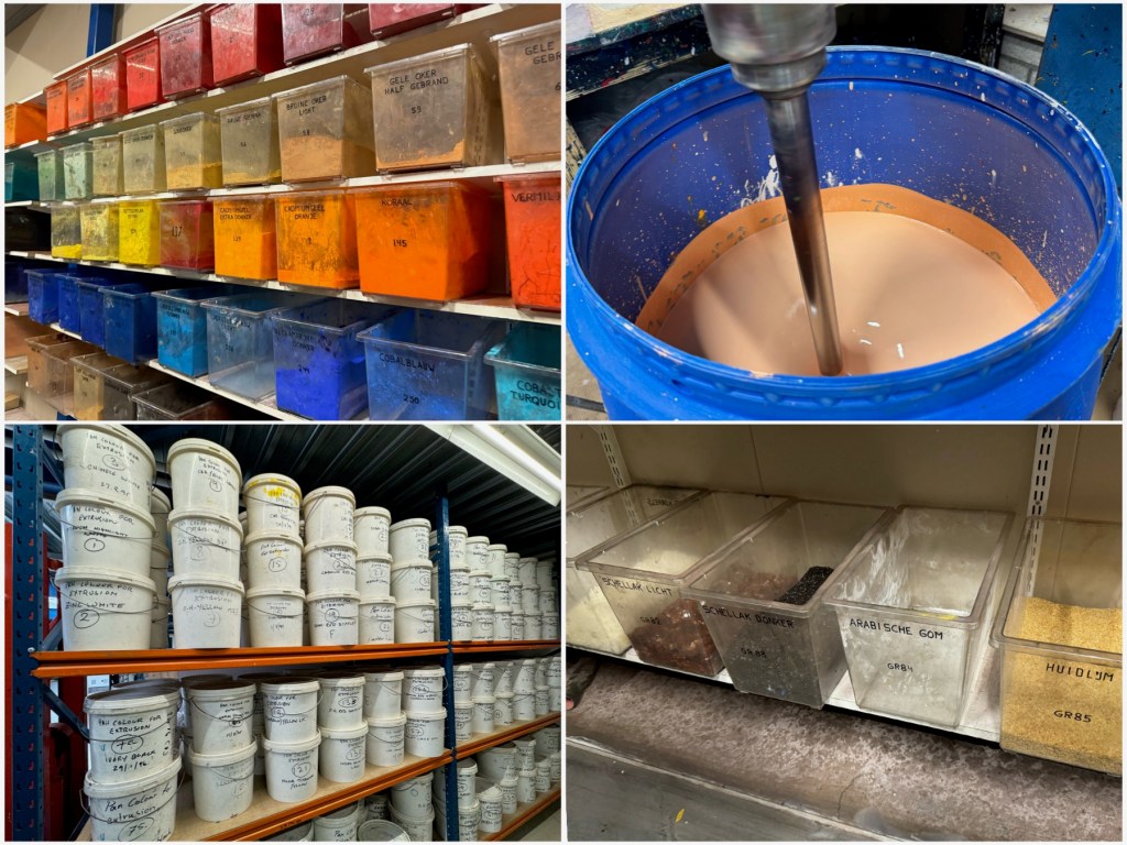 Busy again! And still trying to catch up on not only painting more but also writing about it. Hectic week but last Monday, I had the opportunity to visit a paint factory in the neighborhood here in Driebergen in the Netherlands, arranged by our art tutor, Dieter. Was not having a great start to the day and being grey and gloomy Monday morning, I practically had to force myself to show up. And great decision that was!