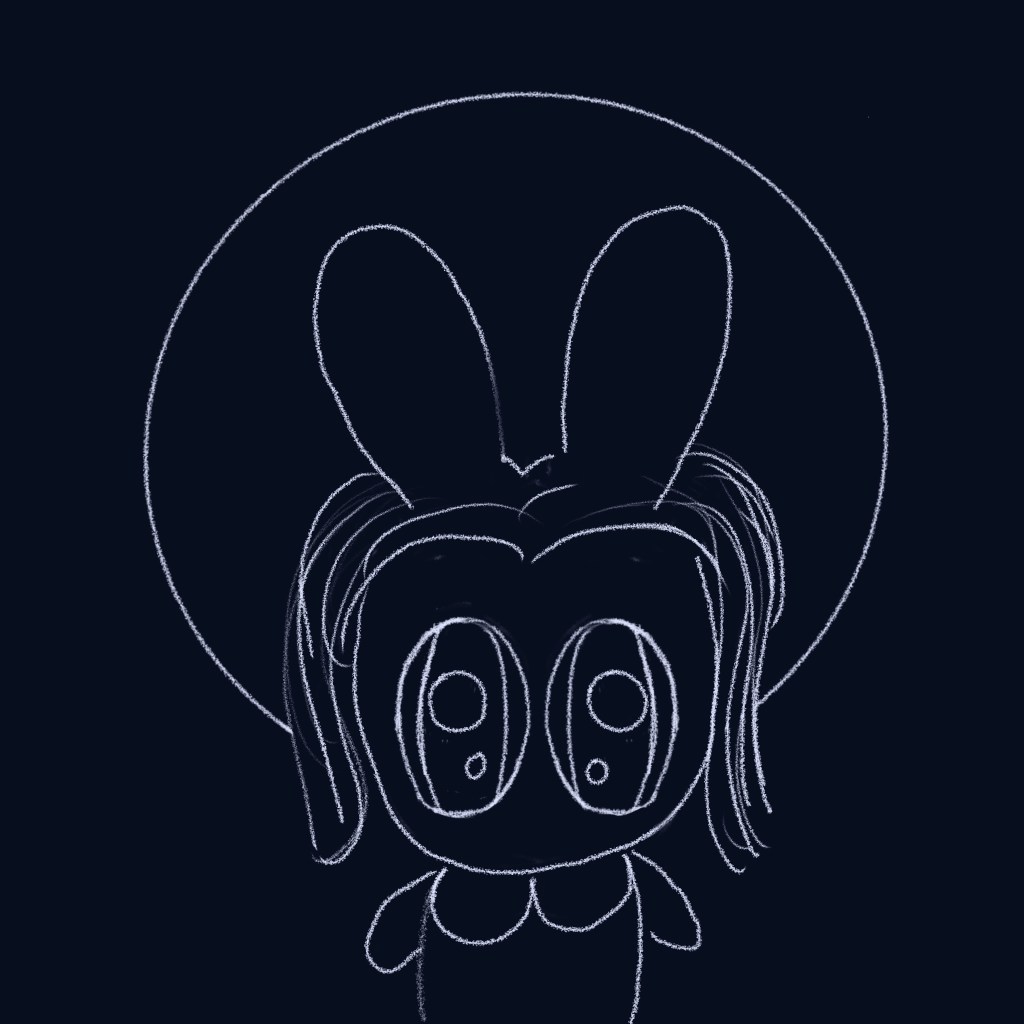 I must say I did enjoy the challenge of finding appropriate brushes and the correct greys for this painting. It was important that a soft light touch was created for the Little One’s face and dress, and for this Soft Airbrush was chosen. Then for the bunny ears, I needed a different texture and hence went for the Rice brush in the Magical Textures range (available on Creative Market). And now for the hair, we went for Grungy Line Brush from Jason’s range. The eyes and dress collar were then filled in with my usual Medium Airbrush. So far, so cute!