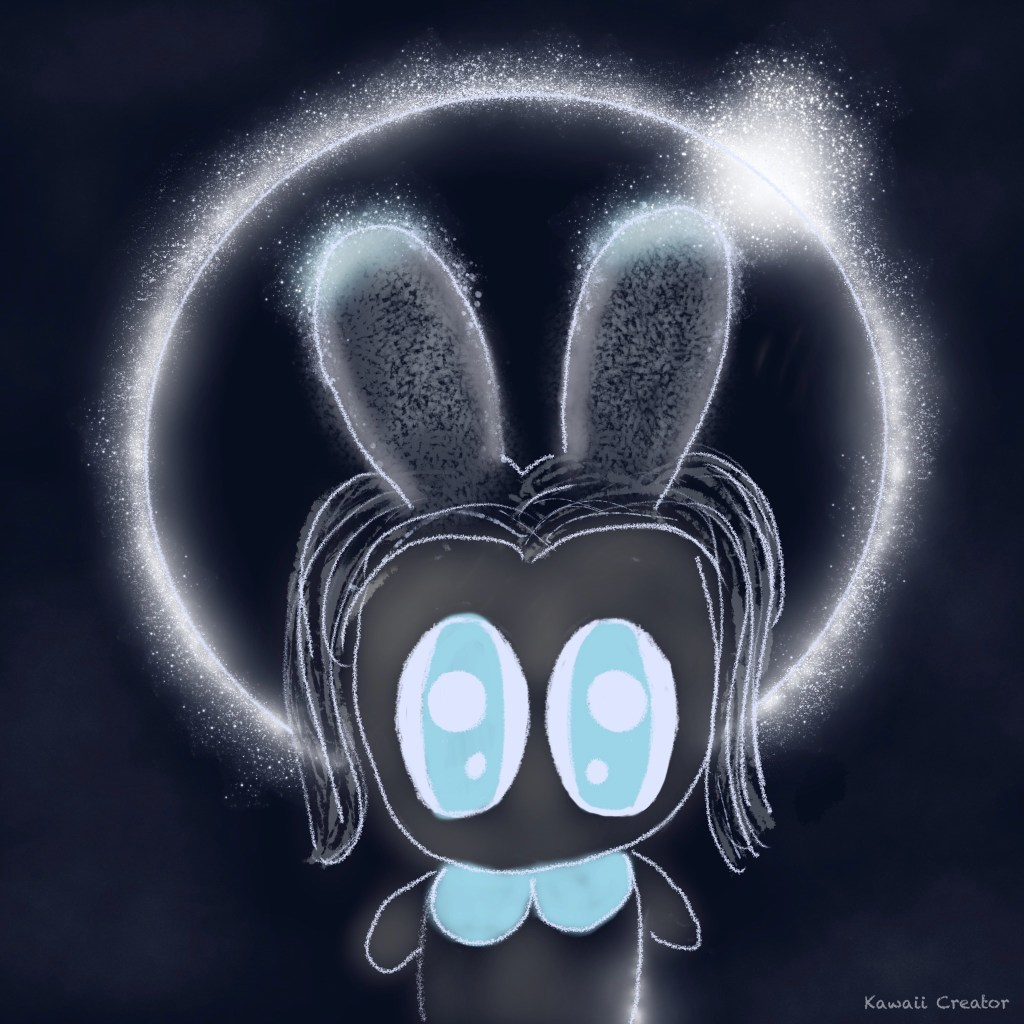 I very much enjoyed working on the Solar Eclipse series. It gave me some practice on working with black backgrounds using different techniques. The charcoal and chalk on black paper was a good warm-up before moving onto painting on canvas. There I got to experiment with different texture mediums. Creating a digital version was then the icing on cake. Although you still get to work with textures, they’re obviously not as tangible as canvas work. Pleased with all of them and although the same subject matter, I can’t compare as they are yet so different to one another. I’ll let you be the judge of that (see below) But one thing is certain though: All of them have indeed achieved the kawaii element!