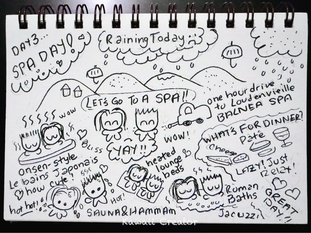 Oh no, Bad weather today! Can’t really complain though since the last few days, it was way to warm and unusually humid for Southwest France. Today’s temperatures were finally more bearable though it rained most of the day. So what to do? Have a Spa Day! Recommended by the owners of the apartment we’re staying, we drove an hour to a Spa complex called Balmea, located in Loudenvielle, and wow! This place boasts a number of warm pools and baths including an onsen-style bath outside (Bains Japonais as it was called how cute), Roman baths, jacuzzis, heated loungers, dry sauna and a Hammam-inspired steam room. For a mere €24 you can enjoy the lot for two hours, and we sure did! A very friendly atmosphere too. Although my French has gotten rusty over the years, everyone both staff and customers were very helpful. You just need to bring your own swimsuit and towel.