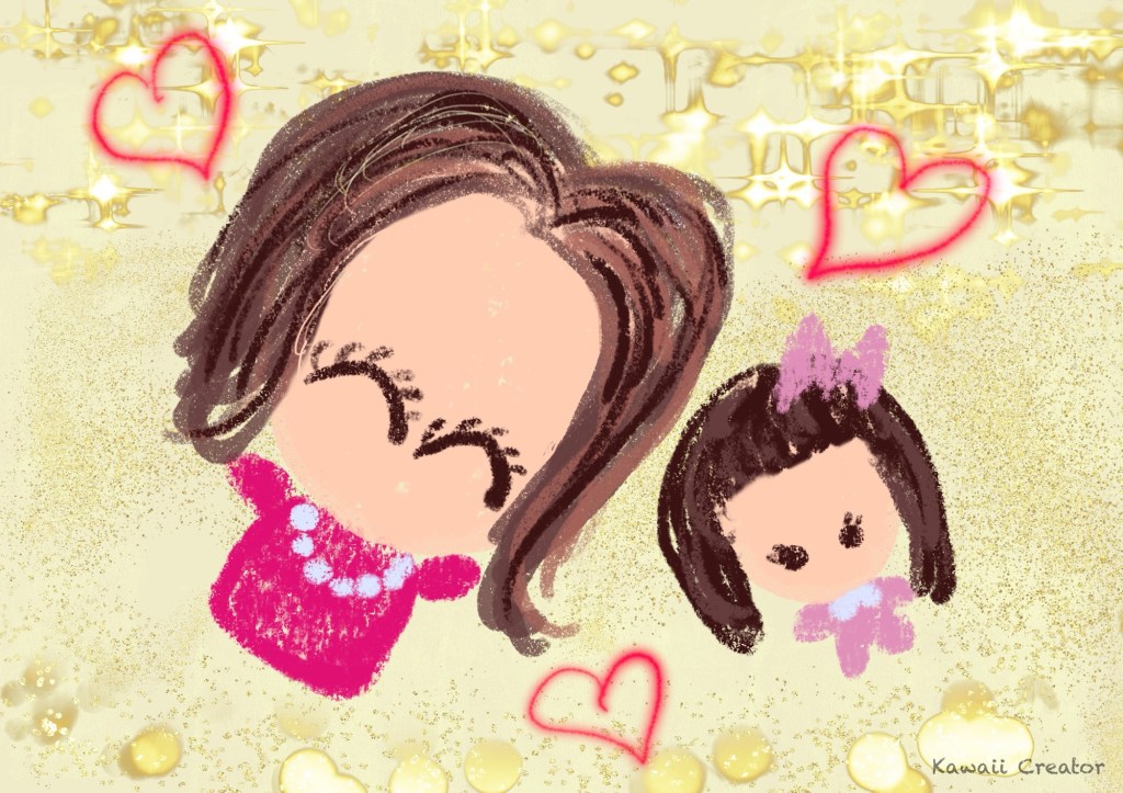 I switched the background colour to a creamy tone, followed by some texture stamps and Overlay light mode. Then the background with some gold glitter and sparkles from the Gold Rush set. I wanted to make the drawing celebratory whilst retaining the kawaii element from the crayon drawing. Besides, Mama is not the bling type and hence I kept the background colour as subtle as possible. And here we have it!
