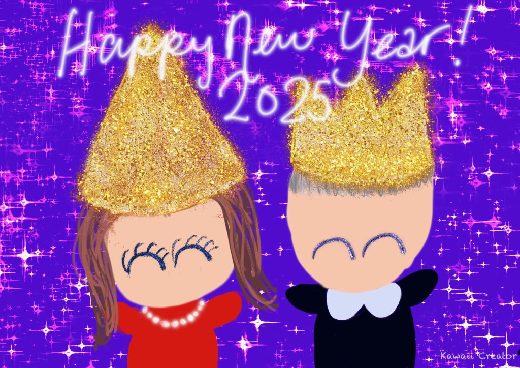 And here is a rather sparkly digital painting I created drawing 2024 to a close. Procreate is such a wonderful tool! Here I mainly used Medium Airbrush for the drawing and the Flowing Hair to add more texture to the hair. And now the illuminations. Available on Creative Market, Gold Rush set of brushes are a godsend for creating glitter and sparkles. Eyes were lined with glitter, and hats were covered with the gold confetti. I also love the Lights set of brushes also from Creative Market. Light Pen and Neon Pens were used for my string of pearls and the writing above. And don’t forget to play around with the Blending Mode! Incidentally, purple is associated with abundance according to the Chinese, believed to attract wealth and prosperity, and more the reason this color was chosen as background. Here is hoping everyone enjoy your last hours of 2024 to bring in another prosperous future for 2025 and beyond!
