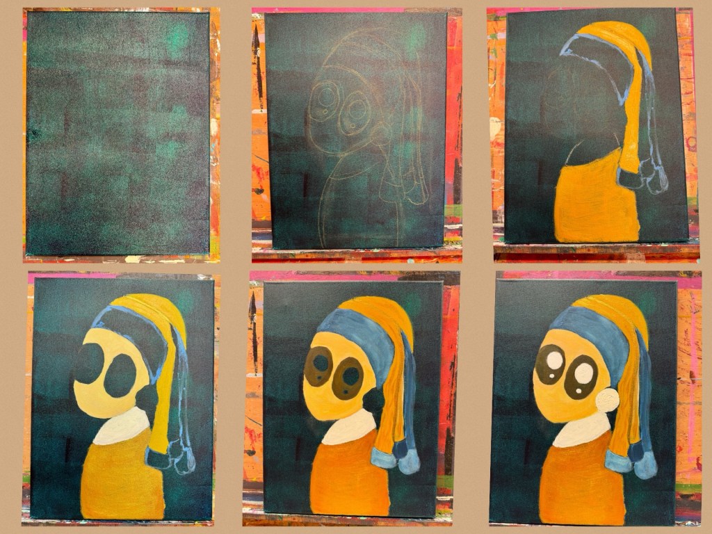 By chance, I happened to make a digital Procreate painting of this some months before following a visit to Vermeer’s exhibition at the Rijksmuseum in Amsterdam in April 2023. If you recall The Pearl Earring. I was intending to make a proper canvas painting at some point later, so a great coincidence that this project came up!
