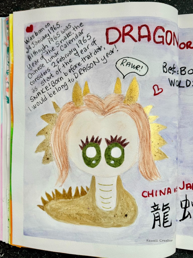 Soon it’s going to be my birthday!  24 January it is.  Born in 1965, the Year of the Snake.  That is, according to the Western calendar, Japan as well, in which the New Year starts on 1 January However, the Chinese Lunar calendar dictates that Snake Year didn’t kick in until 2 February 1965 the start of the Chinese New Year!  That would make me a Dragon instead, the year preceding the Snake.  So which one am I?  Dragon or Snake?  Well, I enjoy having the best of both worlds!  Both are strong ferocious animals, which certainly reflects my character haha.  And now, let’s paint about it!