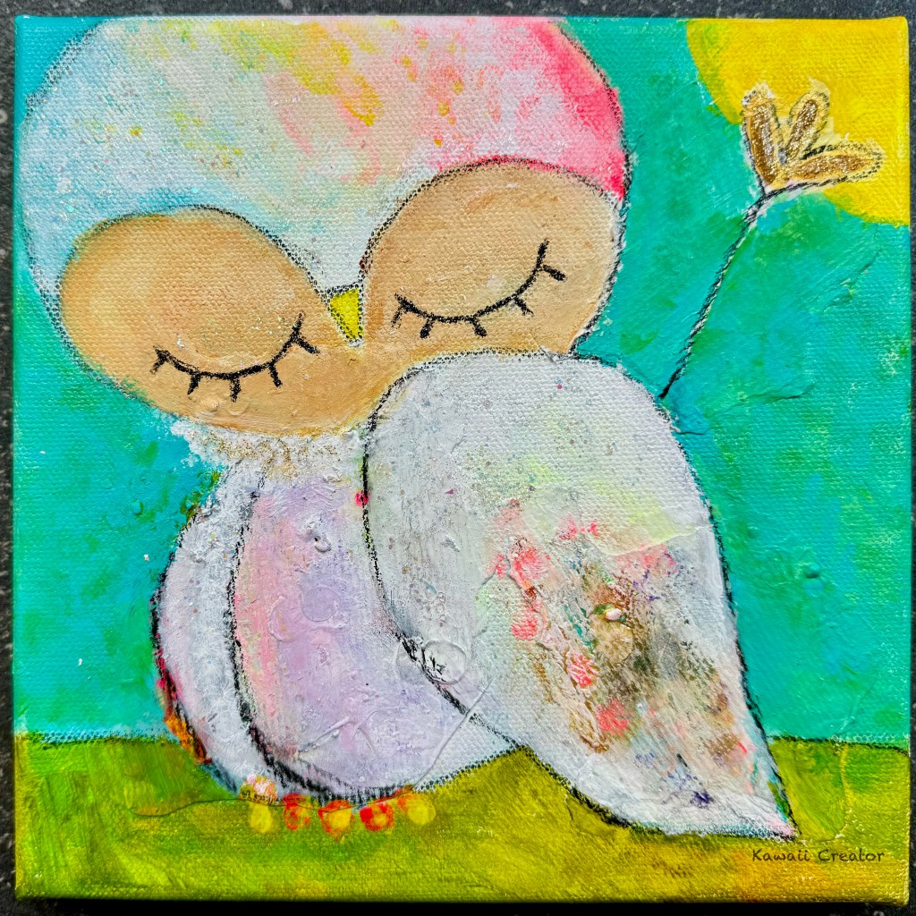 Continuing onto the next unit of Juliette Crane’s Whimsical Animals classes. Today’s unit is An Animal with Closed Eyes + Adding Painted Pages, and once again, we draw an owl! Although I’m not much of an owl person, I thought it’s good practice to learn how to paint birds. We live in a pretty remote farming village in the Netherlands but rather than in the middle of the vast flat fields, our house is situated along a small stream surrounded by tall trees on the other side. This attracts a wide species of rare birds, more than ten kinds in fact come flying around within minutes, according to my bird-specialist partner. And every time a bird comes flying across, I start greeting them, “Hello Bird!” My partner finds it adorable. So of course this is a great time to add birds in my list of “learn to draw”!