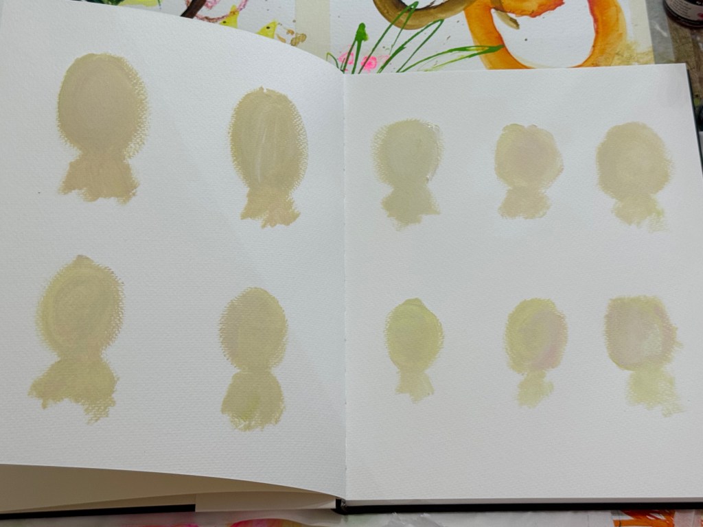 We first just paint the busts on a large piece of paper or, in my case, a two page spread of our sketchbook. Then the fun part begins! Just randomly designing the hair, accessories and outfits with whatever art supplies we had at hand. Was a bit daunting at first, but my creative mind just kept flowing!