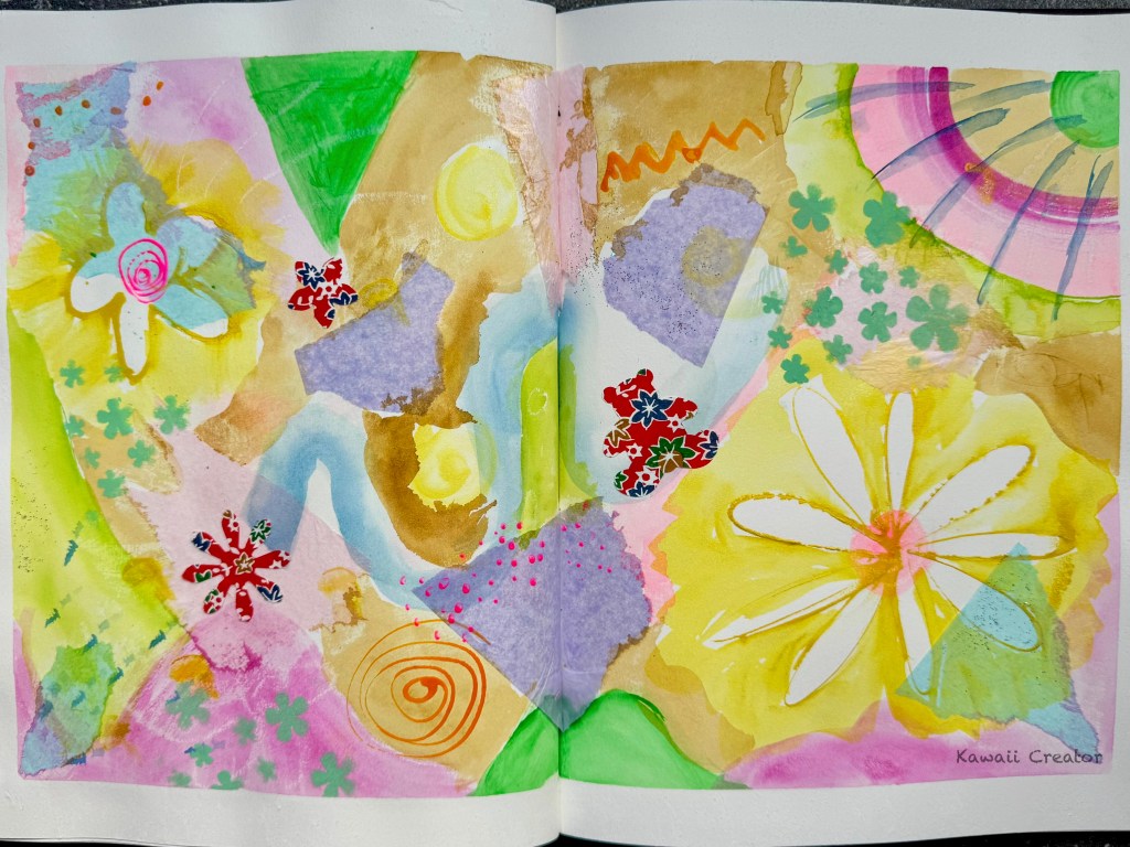 As you may have noticed, I’ve been focusing more on painting characters lately. Switching over to some art journaling with intuitive abstract pieces like this was quite an enjoyable change which I need to do more often. And after painting this, saying goodbye to summer isn’t so depressing after all!
