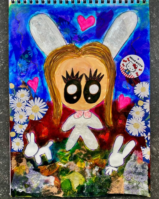 Yay, back to some serious intuitive mixed media work! Today we have Little One dressed as a bunny. But this … More