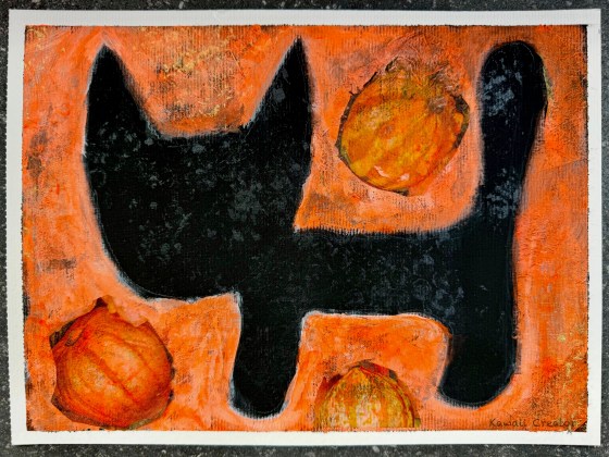 And as we approach Halloween, here comes another themed painting! A black cat this time. She’s surrounded by pumpkins too! … More