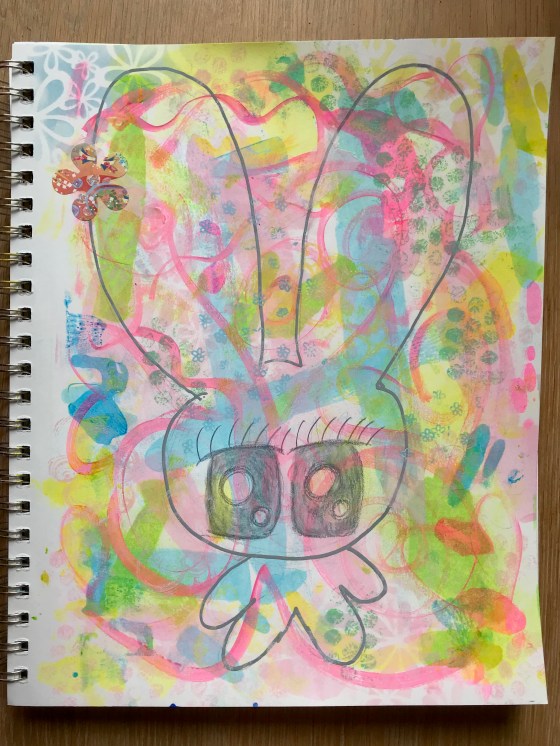 Again another piece that started with smearing leftover paint on blank paper. Then adding more and more layers on top … More